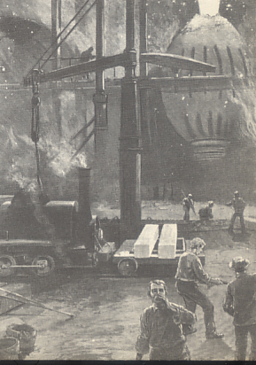 Sotto: un'acciaieria nordamericansa intorno al 1876. L'industria statunitense dell'acciaio, destinata a diventare una delle più grandi industrie del mondo, stava battendo allora tutti i primati per rispondere alla richiesta delle ferrovie e delle opere di ingegneria.
