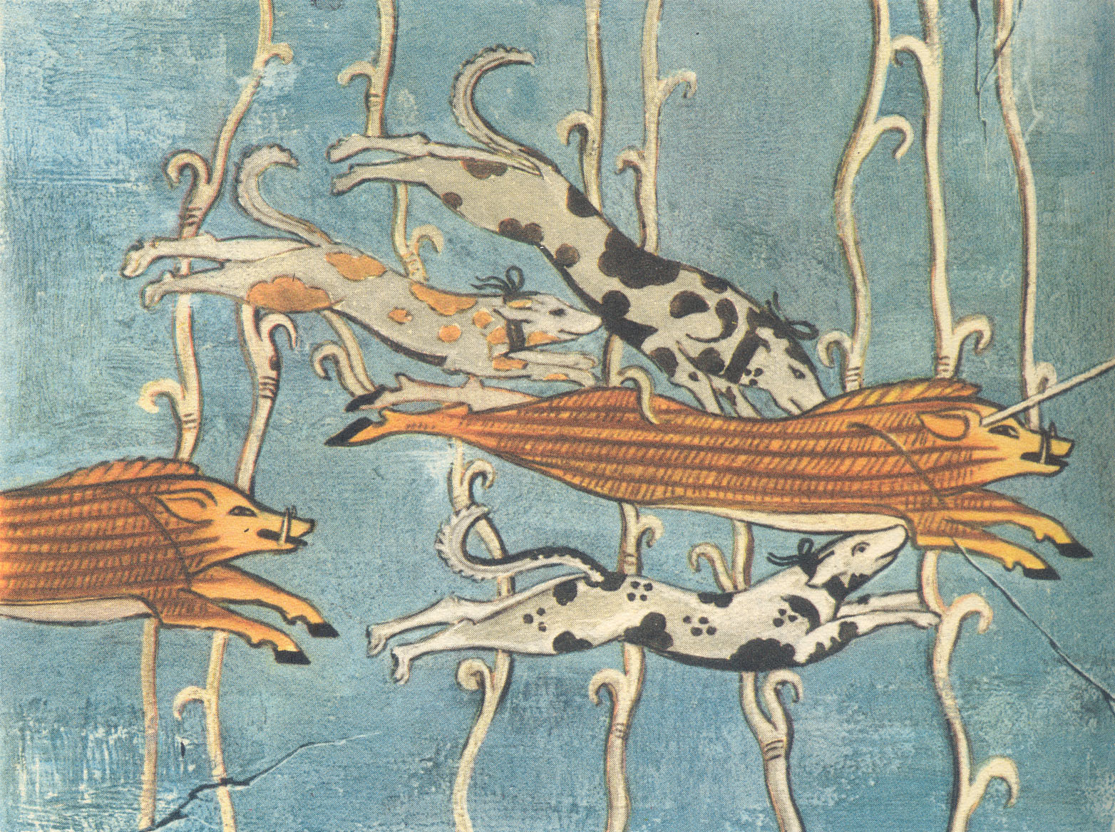 Sopra: affresco miceneo - scene di caccia;