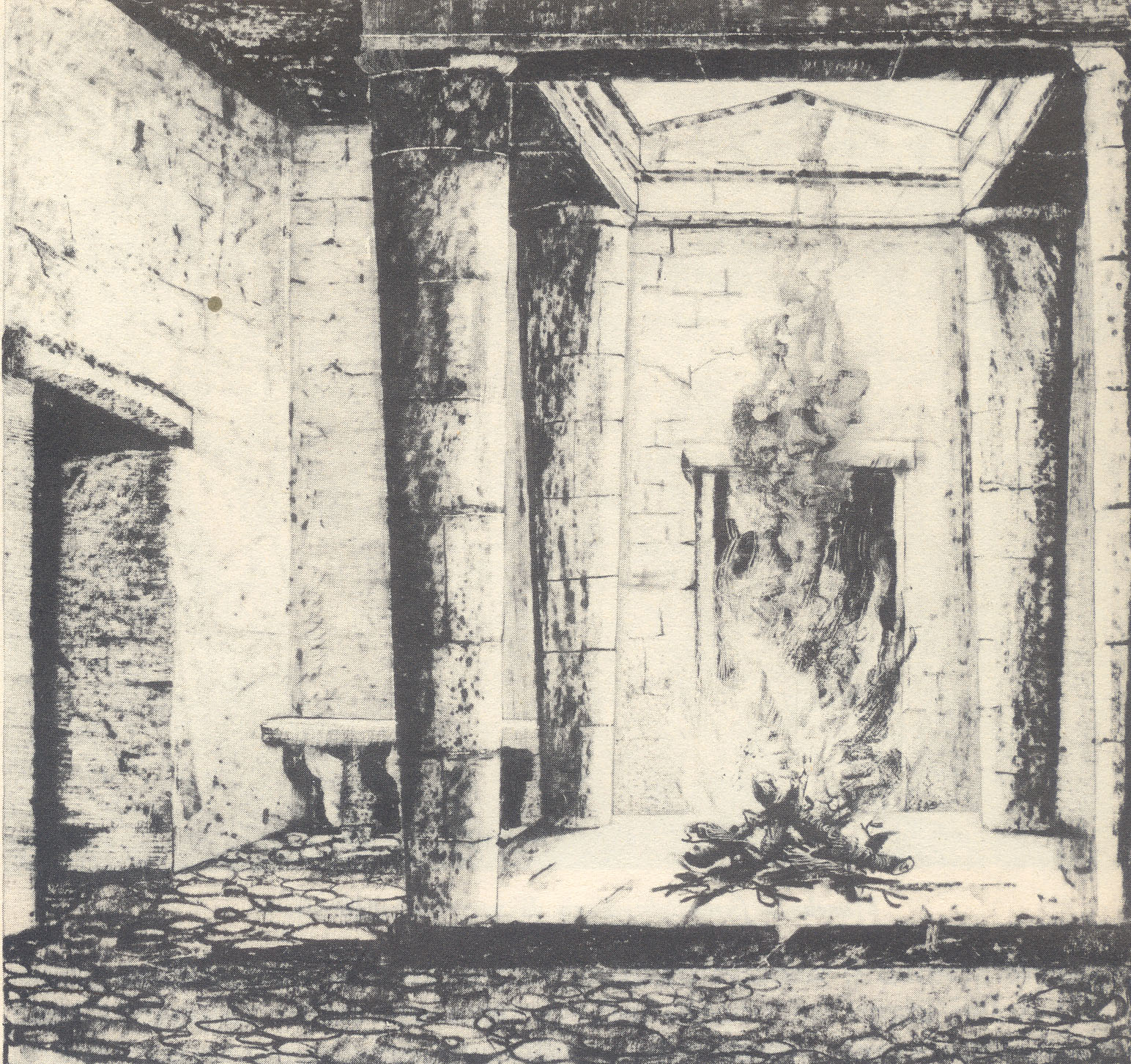 focolare in pietra e,a, ridosso di una parete, il trono. Le parete erano