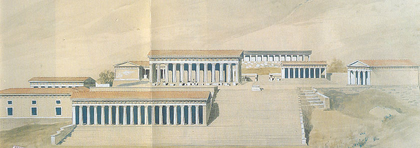 Sopra: l'Heraion di Argo nella ricostruzione di E. Tilton.