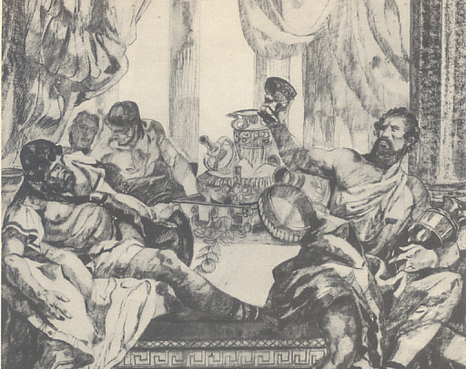 i Greci non facevano mai perchè il vino greco è forte e dà alla testa: e a notte, quando i convitati tornano alle loro
