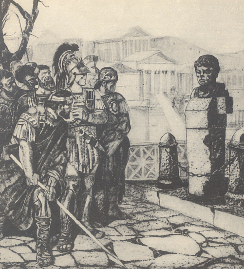 Sotto: un giorno gli Ateniesi trovarono deturpate le erme, e i sospetti caddero sugli amici di Alcibiade.