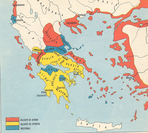 A sinistra: Gli Alleati di Atene e di Sparta nella guerra del Peloponneso.