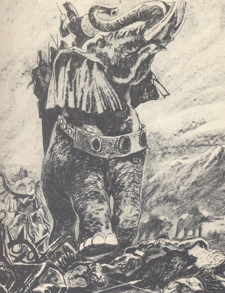 vuole che Pirro fece comparire a Fabrizio un elefante minaccioso a cui Fabrizio rispose in