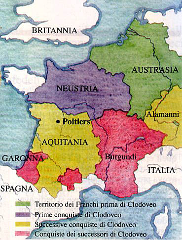 l'appoggio di un'altro Stato, l'Aquitania, e, nel frattempo, le popolazioni germaniche si stavano avvicinando pericolosamente ai confini del regno.