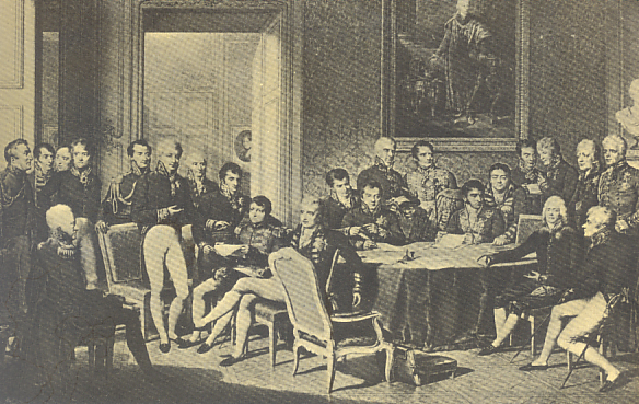 Dopo la prima abdicazione di Napoleone (30 marzo 1814), i rappresentanti dei principali Stati europei si riunirono in Congresso a Vienna per dare un nuovo assetto territoriale e politico all'Europa sconvolta da tante guerre. I popoli attendevano grandi benefici da questo Congresso, che si proponeva di "fare opera di pace e di giustizia nell'interesse della civiltà e del diritto, conculcati dalla violenza della Rivoluzione e dalla prepotenza di Napoleone ". Molti erano convinti che sarebbero stati attuati gli ideali di libertà, di uguaglianza e di indipendenza dallo straniero, in nome dei quali essi erano stati incitati a combattere contro l'oppressione napoleonica. In particolare si sperava che il nuovo assetto territoriale venisse compiuto seguendo il principio di nazionalità, in modo che tutte le nazioni, anche quelle minori, fossero messe in condizione di vivere libere e indipendenti entro i propri naturali confini geografici; e generale era la fiducia che nell'assetto politico venissero rispettati i principi di sovranità popolare e di uguaglianza giuridica, considerati come conquiste ormai definitive della civiltà.