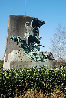 L'Aigle blessè, il principale monumento francese posto a ricordo della difesa della Vecchia Guardia, 200 metri a sud di La Belle-Alliance