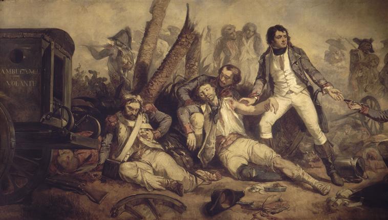 Larey opera nel campo di battaglia, Parigi, Accademia Nazionale di Medicina. Quadro di Charles-Louis Muller.