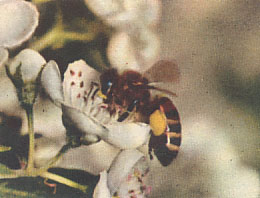 Le api, coperte di polline, favoriscono con l'impollinazione, la produzione di frutti. La notevole moria di api