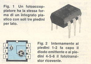 Normalmente, un fotoaccoppiatore si presenta come visibile in fig, l. cioè come un integrato plastico "minidip" provvisto di soli 6 terminali.