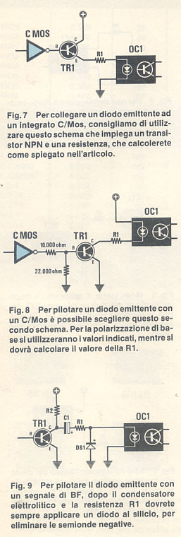 in funzione della tensione di alimentazione applicata sul collettore del transistor (vedi fig. 7), oppure collegare il diodo emittente in serie con il collettore del