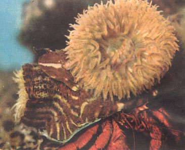 sotto: Paguro Bernardo protetto da una conchiglia di Chiocciola acquatica.