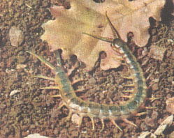o Scolopendra, dal corpo diviso in segmenti, ciascuno dei quali porta un paio di zampe (15-20 paia di zampe in tutto). Ha il corpo piatto, allungato, di color