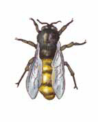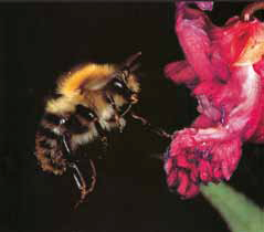 Sopra: ape che trasporta il polline dopo essersi nutrita.