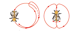 1) Se la fonte di cibo è situata entro i 50 metri di distanza dall’alveare, l’ape esegue dei movimenti circolari, in senso orario e