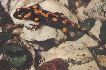 Di un altro gruppo fa parte la Salamandra, quella specie di « lucertola » nera chiazzata di giallo e con la testa di Rana, che