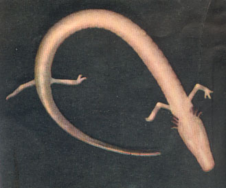 Sotto: il Proteo, che vive nelle caverne.