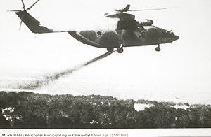 molti elicotteristi che buttarono dall'alto sacchi di boro e sabbia e vigili del fuoco che cercarono di chiudere la falla verso